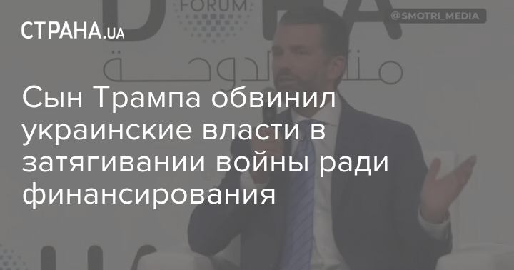 Дональд Трамп-молодший, син президента США Дональда Трампа, знову розкритикував українську владу, зазначивши, що вони посилають на фронт бідних і продовжують війну, поки їм дають фінансування.