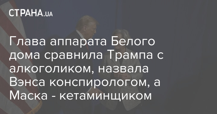 Глава апарату Білого дому порівняла Трампа з алкоголіком, назвала Венса конспірологом, а Маска – кетамінником