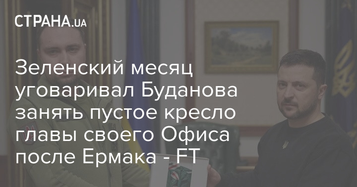 Володимир Зеленський протягом усього останнього місяця вмовляв керівника ГУР Кирила Буданова очолити Офіс президента України, пише The Financial Times із посиланням на джерела.