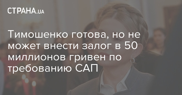 Тимошенко готова, але не може внести заставу у 50 мільйонів гривень на вимогу САП
