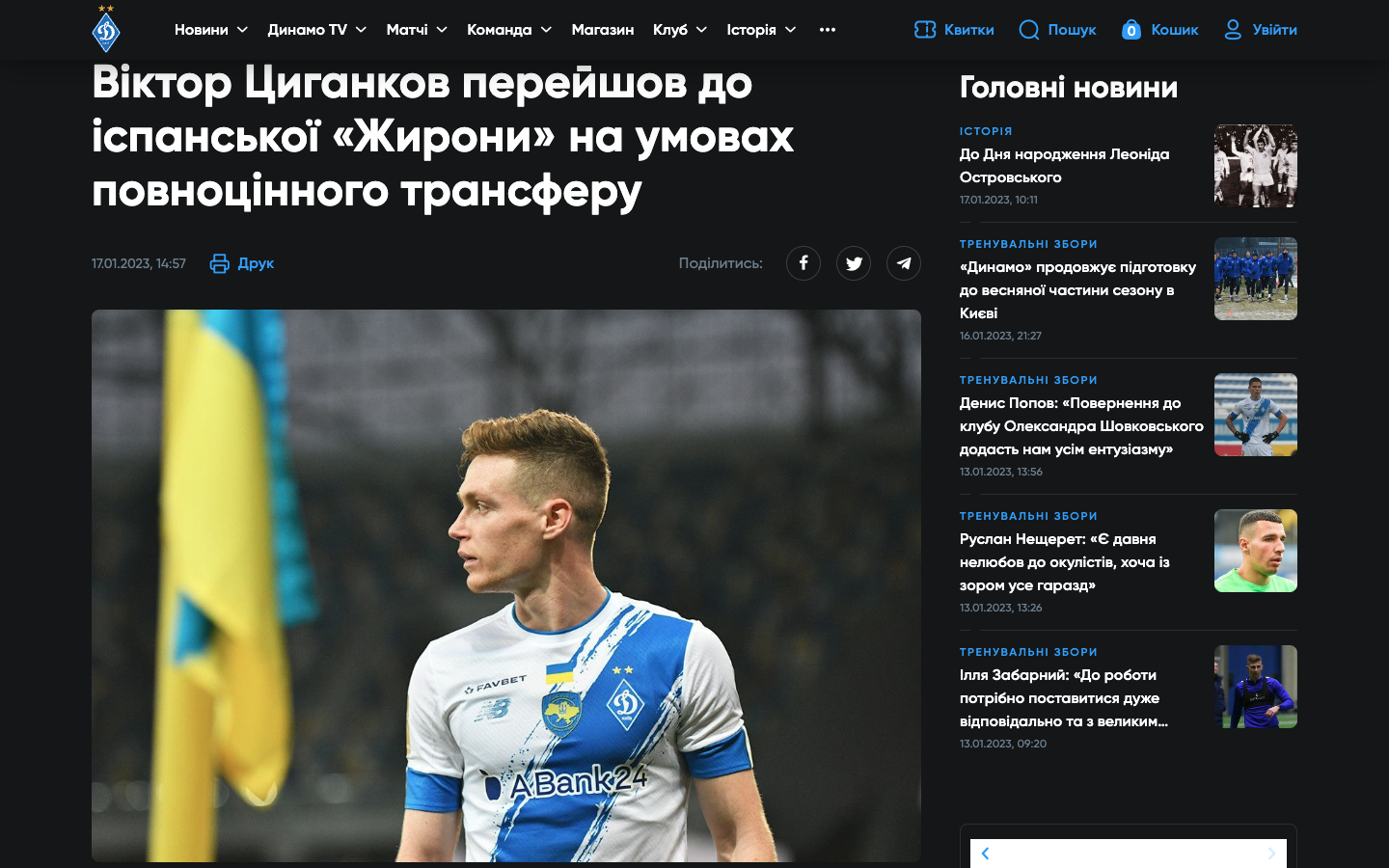 Ще один український талант перейшов до європейського футбольного топ-чемпіонату. Ведучий півзахисник київського "Динамо" Віктор Циганков став гравцем іспанської "Жирони".