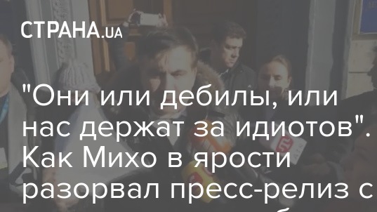 "А что я должен обжаловать, если решения нет? Вы когда-нибудь слышали, чтобы на пресс-релиз подавали в суд? Они или полные дебилы-идиоты тут все - или нас держат за идиотов. ... Вот ваш пресс-релиз, сами его и обжалуйте. На! (пытается сунуть чиновнику в руки) Не хотите? Вот (бросает обрывки в грудь)", - заявил Саакашвили.
