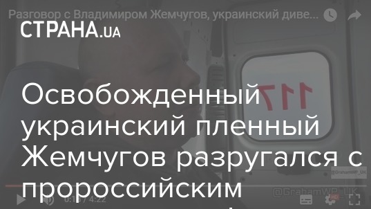 Британский стрингер и журналист Грэм Филлипс, известный своими пророссийскими взглядами (сейчас работает на территории самопровозглашенных "ДНР/ЛНР") опубликовал видео беседы с освобожденным военнопленным Владимиром Жемчуговым. Разговор состоялся при обмене пленными под Счастьем.