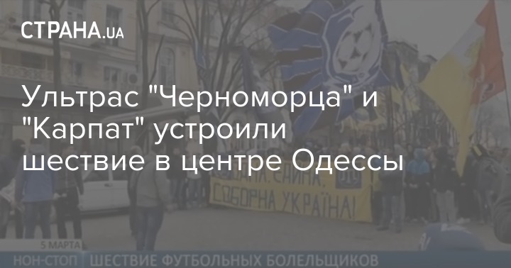 Фанаты клубов "Черноморец" и "Карпаты" 5 марта провели на улицах Одессы шествие в поддержку единства Украины. Соответствующие видеозаписи размещены на YouTube.