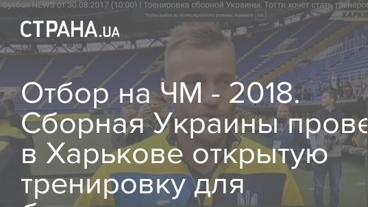 Вчера, 29 августа сборная Украины по футболу провела в Харькове открытую тренировку перед отборочным матчем на ЧМ-2018 со сборной Турции, который состоится 2 сентября.